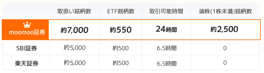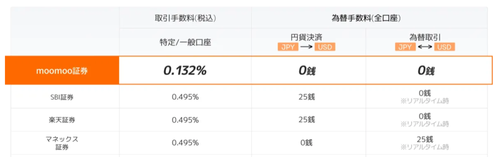 この表を見ると、moomoo証券の優位性が一目瞭然ですよね。
