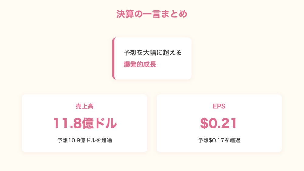 ⭕️EPS: 0.21ドル(予想0.17ドル)