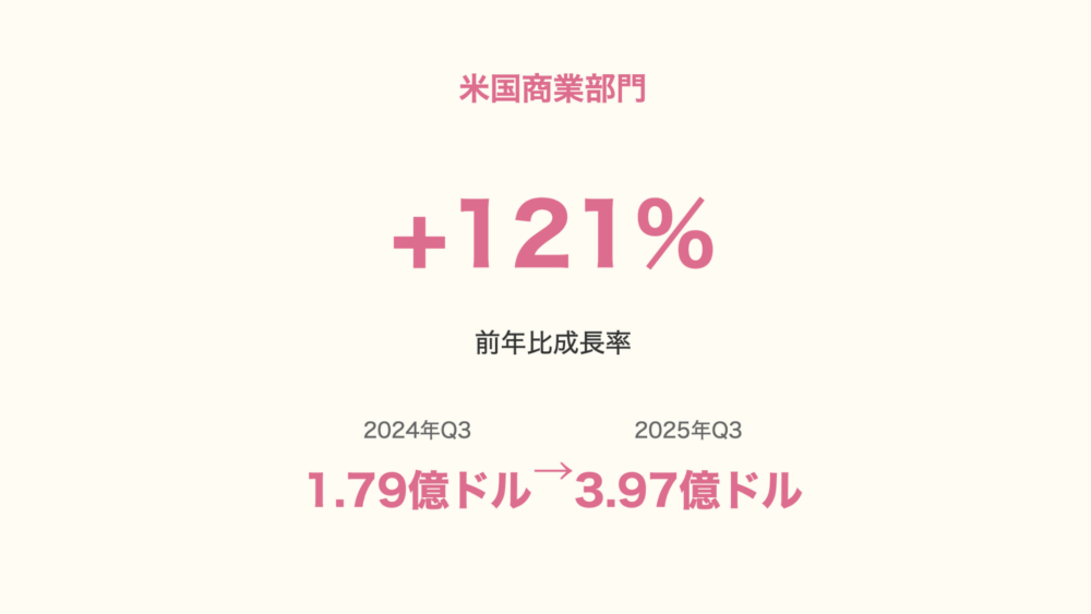 米国商業部門が前年比121%成長という驚異的な業績を達成✨