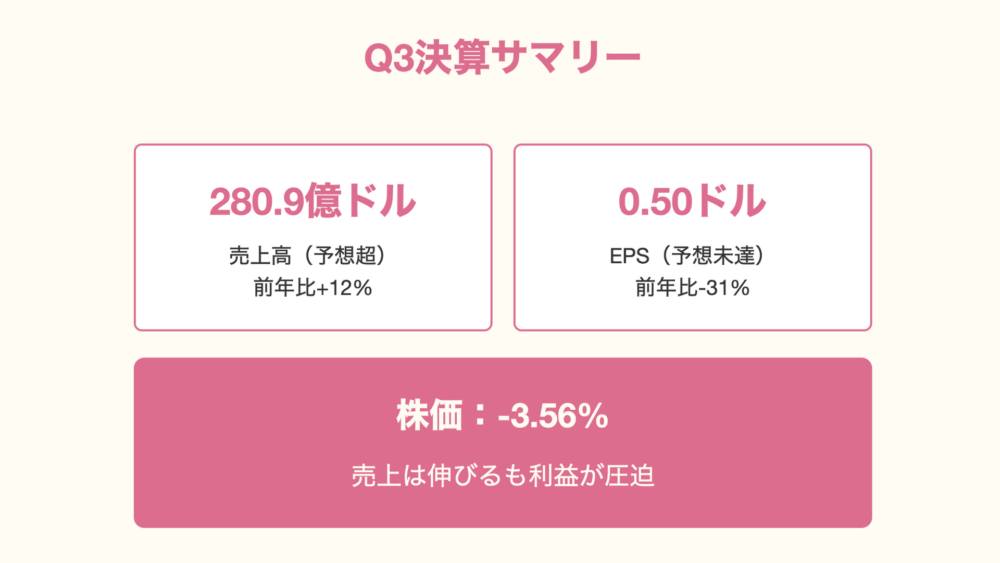 📉営業利益: 3.99億ドル(-66%… pic.twitter.com/J1HwDrjP93