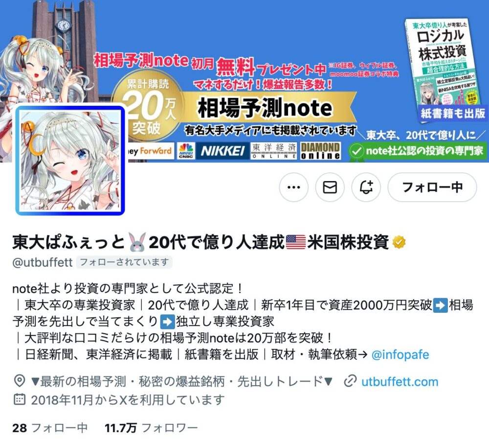 東大ぱふぇっとさんは、投資家界隈では知らない人はいないほどの超有名インフルエンサーです。