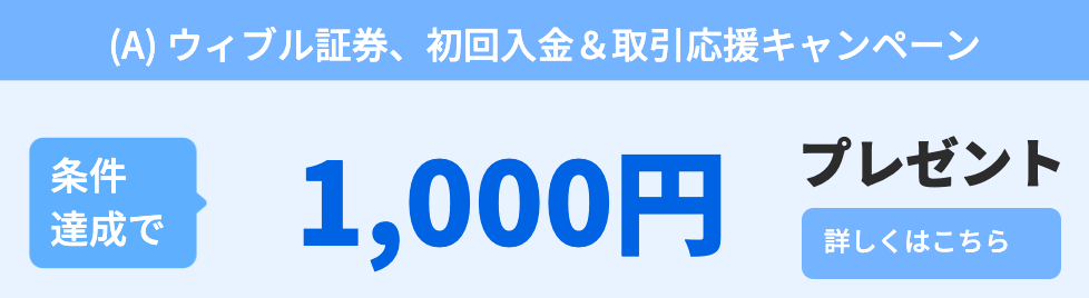 さらに、ウィブル証券で初回入金&取引をすれば現金1,000円ももらえる。